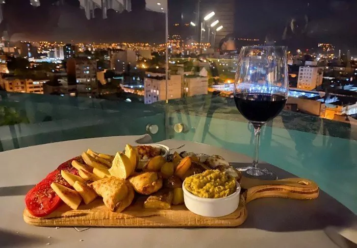 The hotel has 3 restaurants. The breakfast restaurant on the 1st floor serves a breakfast buffet (included). On the ground floor is the Los Cerros restaurant and bar, which serves delicious local and international cuisine. If you’re just feeling peckish, you can enjoy some light tapas and snacks on the hotel’s rooftop terrace, which affords breathtaking views of the city and Mount San Bernardo. We also highly recommend watching the sunset from up here with a glass of locally produced red wine.