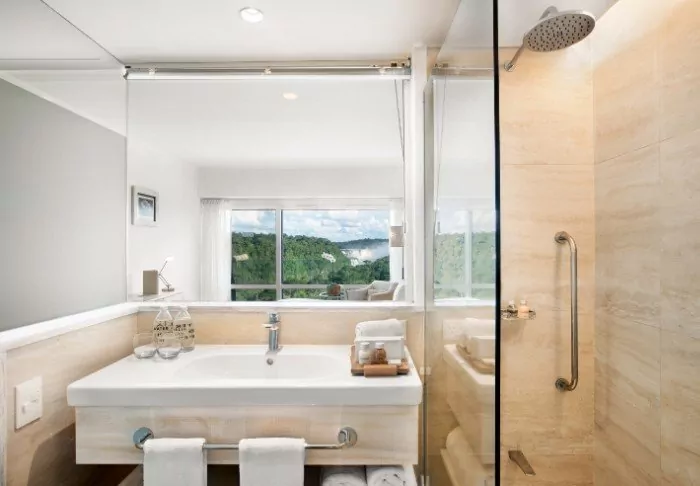 The luxurious hotel has 183 rooms, all with balconies either overlooking the jungle or the falls. The rooms all offer Wi-Fi, air conditioning, satellite TV, ironing facilities, a minibar, a safe, a hair dryer, bathrobes and toiletries.