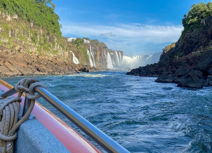 You will see the giant waterfalls from below, and at the end, you will sail in under one of the smaller waterfalls, allowing you to boast of having taken a shower in the Iguazú Falls! Of course, it’s entirely up to you whether you feel like placing yourself in the middle of the cascades. Either way, you will definitely enjoy a soaking on the trip, so it’s a good idea to either change into swimwear or wear a rain poncho. You will be given a waterproof bag for your valuables.