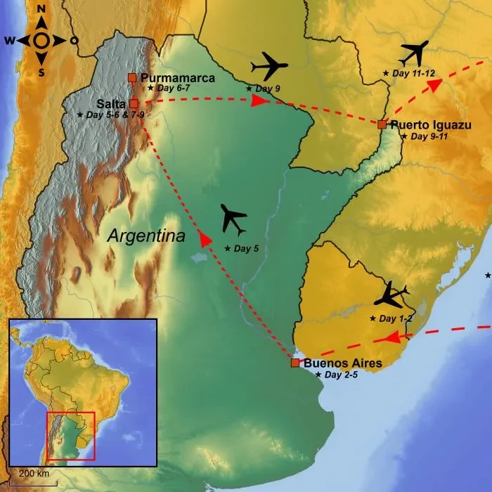Departure from your chosen airport bound for Argentina with connecting flight(s) on the way.