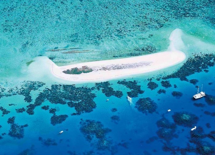 The boat you sail on is a 100-foot luxury catamaran, and today’s destination is a sandbar on the outer reef, Michaelmas Cay.