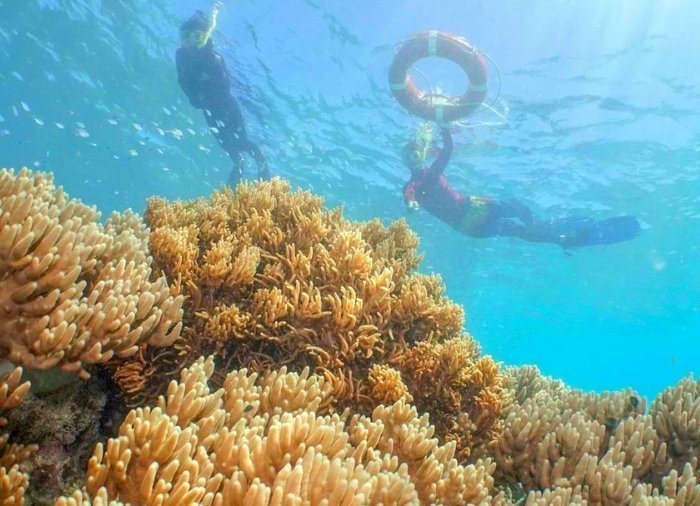 The sail out here takes just over two hours, with morning coffee served and a marine biologist giving a talk about the reef along the way. The boat anchors off the sandbank, and the next few hours are yours to enjoy the fantastic coral reef.