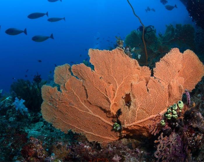 The catamaran is well equipped with air conditioning, a bar and freshwater showers. At the back of the boat, there is a platform which is lowered into the water when you are anchored next to a reef, allowing you to get in and out of the water without the use of a ladder.