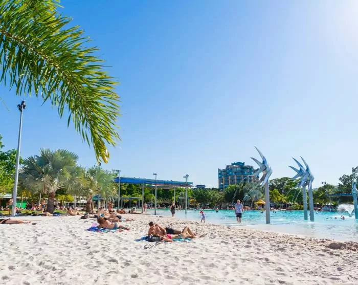 Cairns is a lively coastal city in northern Queensland, and the city is probably best known as the gateway to the Great Barrier Reef, the world’s largest coral reef. The city also offers lots of activities, cafés, restaurants and shops. There is no beach here, but to compensate for that, a large, man-made lagoon has been built in the middle of the city, where you can both enjoy the sun and swim.