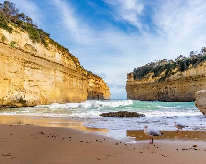 From here, the photo stops just keep coming. Just before you arrive at the charming crayfishing village of Port Campbell, you’ll find London Bridge, an iconic formation on the route. It was once a double arch that resembled London Bridge, but it collapsed in 1990 and is now a separate landmass, though still worth a photo stop.