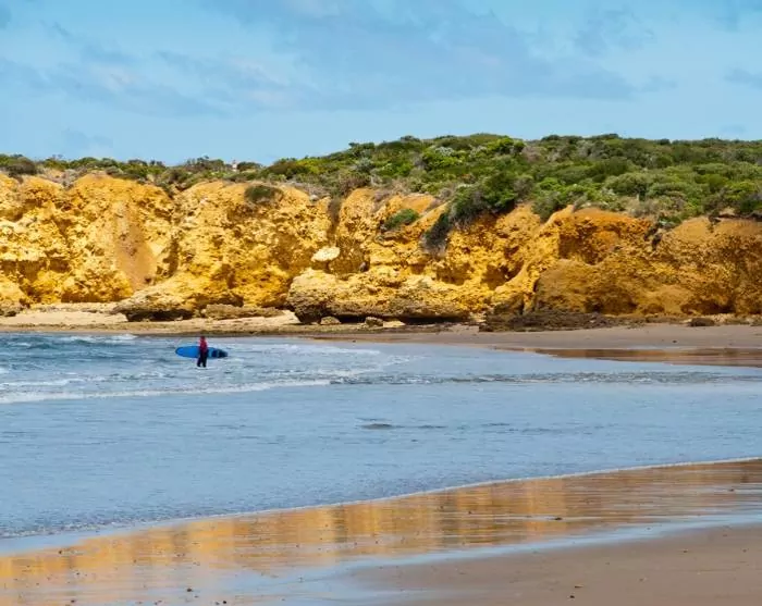 From Lorne, the Great Ocean Road takes you through Aireys Inlet, Anglesea and Torquay, a fantastic mix of lush vegetation, breathtaking coastal scenery and lovely beaches, both for swimming and not least for surfing. Just before Torquay is Bells Beach, a beach for highly skilled surfers and where the prestigious Rip Curl Pro surf competition is held every year.