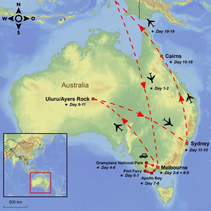 Today sees the start of your Australian road trip, which over the next 5 days will take you to Grampians National Park and the Great Ocean Road, two of the biggest highlights of the state of Victoria.