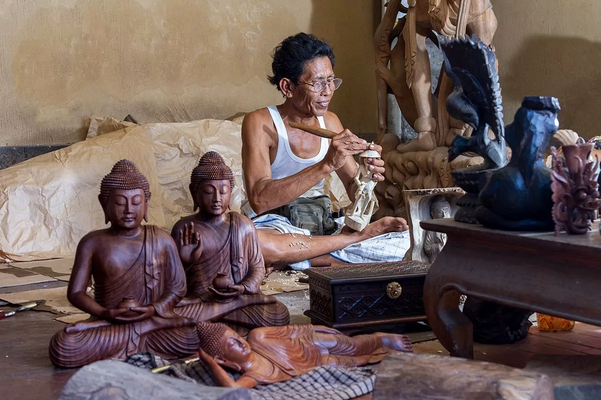 Afterwards, you are driven to the small arts and crafts villages Mas and Batubulan, which each have their own speciality. In Mas, the wood carvers pursue their expertise, and in Batubulan, you can experience the stone carvers.