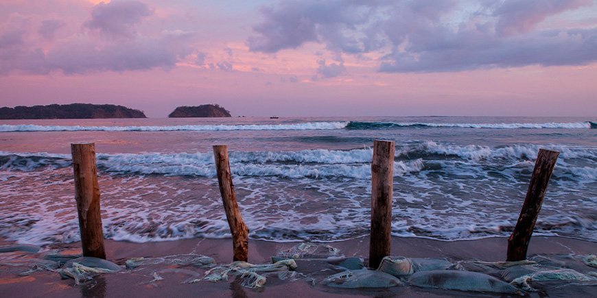 Playa Sámara’s idyllic setting offers sunsets that will leave you breathless. The sky explodes in golden and pink hues as the sun sets over the calm sea, creating a peaceful, almost dreamlike atmosphere on the beautiful sandy beach.