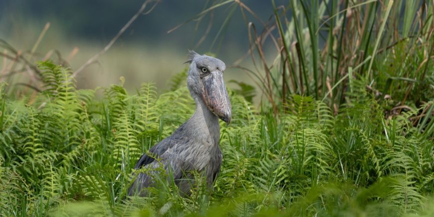 Where the shoebill can be spotted: in Uganda, Tanzania and Zambia to name but a few, where it likes to live in swampy areas.