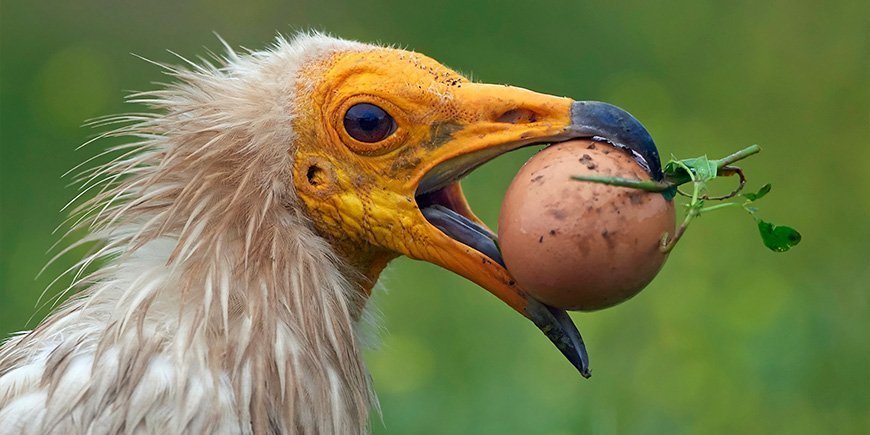 The Egyptian vulture (Neophron percnopterus) also enjoys more than just carrion. It’s famous for using stones to break open ostrich eggs, which it then eats.