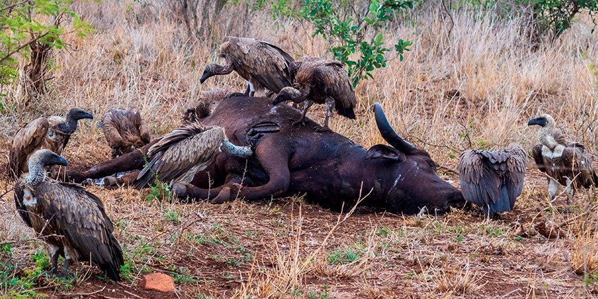 Vultures are particularly known for being scavengers, devouring everything that other animals leave behind.