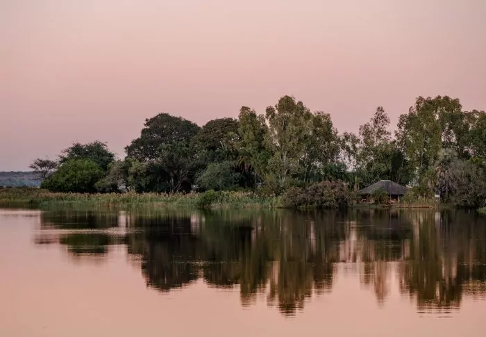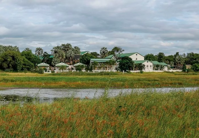 It’s easy to get there by boat. Around a 15-minute boat ride from the lively town of Kasane, you arrive at a completely different world! Before you get to the lodge, you have to go ashore and have your passport stamped at the minuscule border office marking Namibia. On the Namibia side, everything is quiet. The lodge is located by itself, and you can only hear the birds chirping and the hippos grunting.