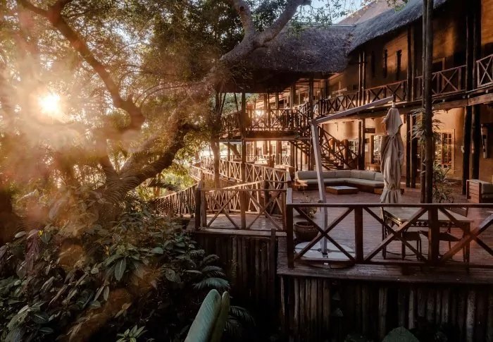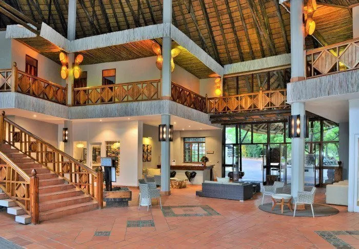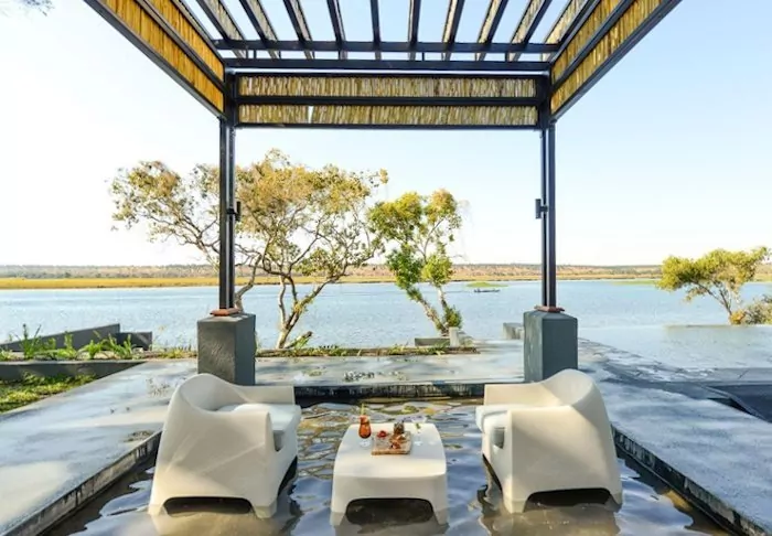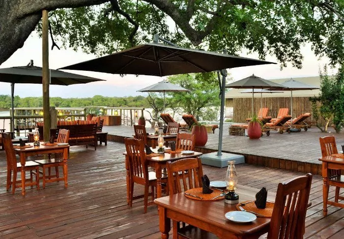 The lodge has two restaurants, a spa and two bars, one of which is perfect for a “sundowner” overlooking the river and the sun going down over the national park.