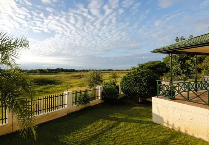On the other side of the reception is the large lawn, which extends right down to the Chobe River, where the hippos honk merrily, day and night.