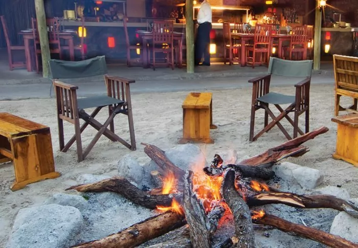 The real draw at Maun Lodge is the bar and restaurant area, which is really cosy. Both are centred around an outdoor bonfire pit where a fire is often lit in the evening, so you get to eat dinner in the glow of the flames.