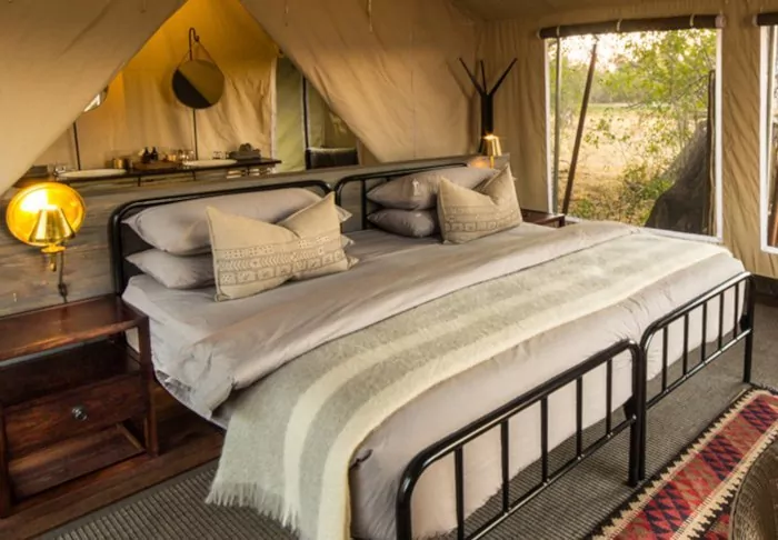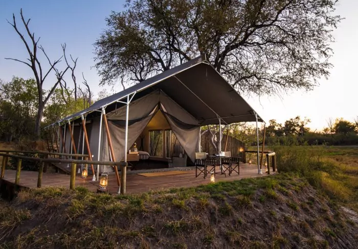 Khwai Leadwood Camp consists of six safari tents in classic canvas style with a good sprinkling of luxury.