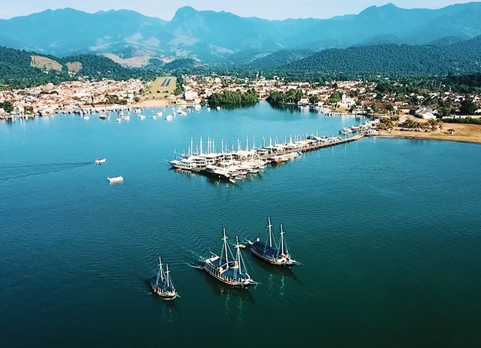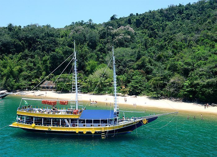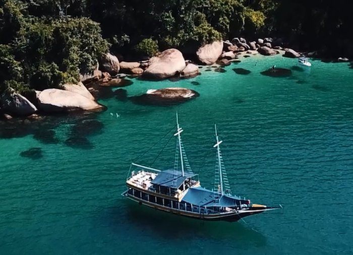 Sail on a beautiful wooden schooner on a boat trip in the idyllic Paraty Bay.