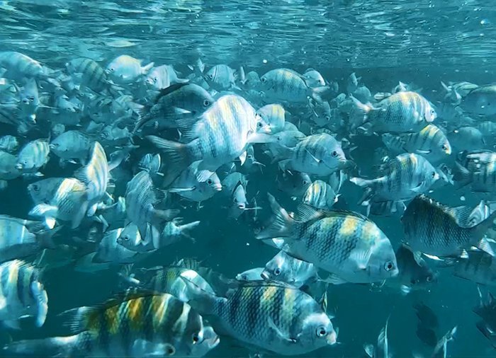 You can rent snorkelling equipment on board and see the colourful fish swimming about under the surface.