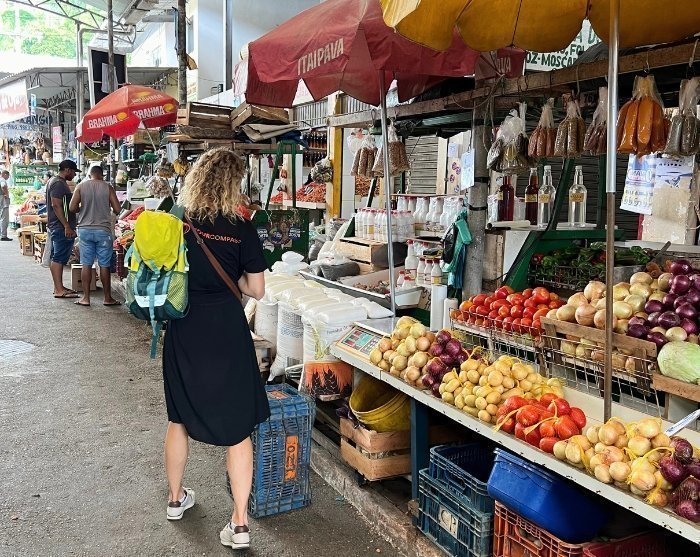 Next, the tour heads to the local market to purchase ingredients for the day’s cooking class. You will learn how to make ‘moqueca,’ a local fish and seafood stew, as well as a typical dessert.