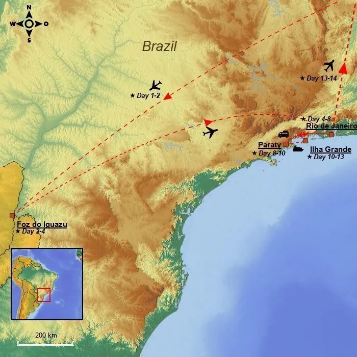 On arrival, you are picked up at the airport and driven to your hotel. To ensure that your visit to Brazil gets off to the best possible start, our partner will come to your hotel and hold a short welcome meeting of around 30–60 minutes. This is an opportunity for you to run through your tour together and get answers to any questions you may have about the tour or other practical questions about Brazil.