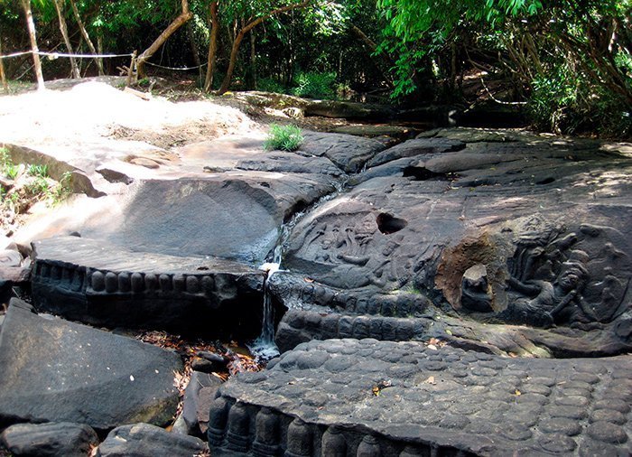The guide picks you up from your hotel and drives you to Phnom Kulen mountain, which is located in Kulen National Park, a 2-hour drive outside Siem Reap. The place is especially famous for its waterfall and is one of Cambodia’s most sacred sites. It was here that King Jayavarman proclaimed the country’s independence from Java and laid the foundation for Cambodia in 802 AD. Jayavarman had thousands of “lingas” (conical or cylindrical stones symbolising the generative and creative power in Hinduism) carved into sandstone by the river bed so that he could bathe in the holy water. At the top of the mountain is Preah Ang Thom pagoda with its large Buddha statue, to which locals, pilgrims and monks flock to pray and to swim in the pools at the waterfalls. There is time to enjoy the beautiful scenery, so remember to bring your swimwear and a towel if you also wish to enjoy a dip along the way.