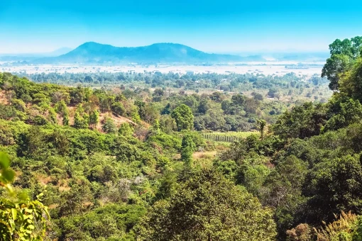 En route to Kratie, you can enjoy the beautiful, lush landscapes, fields and plantations of papaya, chilli, aubergines and tobacco, etc. lie side by side. In Kratie, on the banks of the Mekong River, and on the small, car-free and scenic green island of Koh Trong, country life is still lived with ox-drawn carts and hand-planted rice fields. It’s like stepping back 50 years in time. Dolphin watching also awaits you on the Mekong River, where you can spot the rare Mekong dolphins.