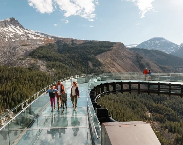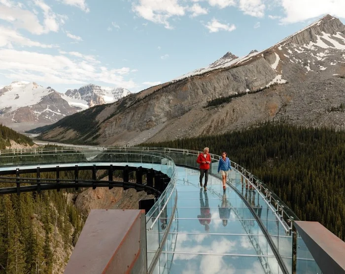 Experience the awe-inspiring Columbia Icefield Skywalk, where a stunning glass walkway takes you 280 metres above the dramatic Sunwapta Valley along the iconic Icefields Parkway, right in the heart of Jasper National Park.