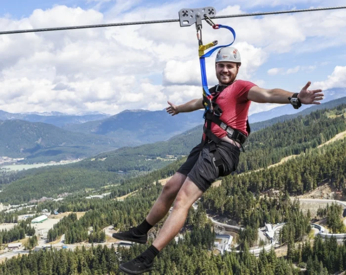Your adventure begins at the summit of Blackcomb Mountain, where you’ll be securely harnessed and sent soaring on a journey of over two kilometres, suspended 180 metres above the ground. You’ll not only feel the thrill of the speed but also enjoy breathtaking views of Whistler’s stunning mountain wilderness.