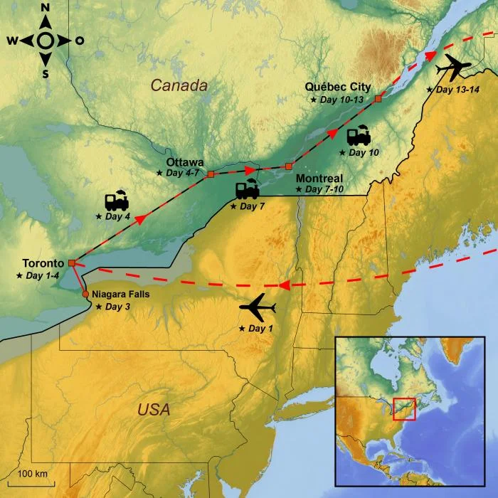 Join us on an exciting train journey through some of eastern Canada’s most atmospheric and culturally significant cities: Toronto, Ottawa, Montreal, and Québec – all topped off with a guided tour to the world-famous Niagara Falls.