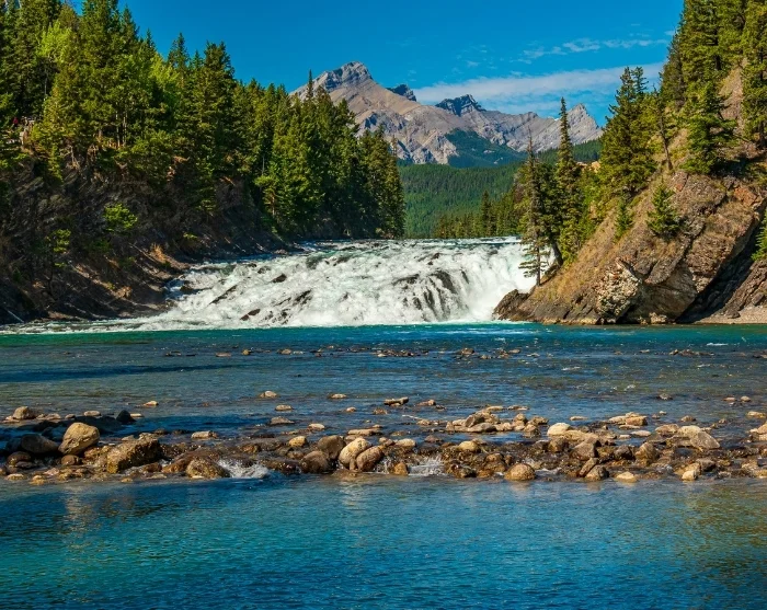 After a couple of hours, you’ll arrive in the charming mountain town of Banff, situated within Banff National Park itself. The Bow River runs through the town, and we highly recommend strolling to the famous Bow Falls, easily reached on foot along well-maintained paths or by bike.