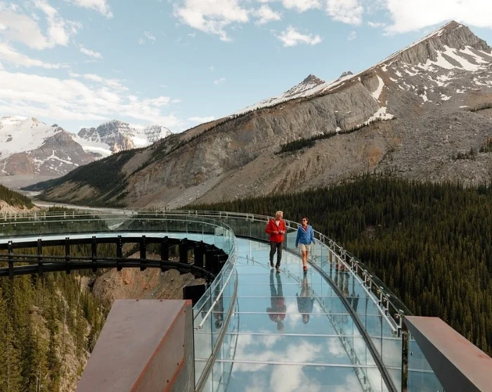 You’ll also dare to walk the awe-inspiring Columbia Icefield Skywalk: a glass-floored walkway with breathtaking views across the Sunwapta Valley, some 280 metres below your feet.
