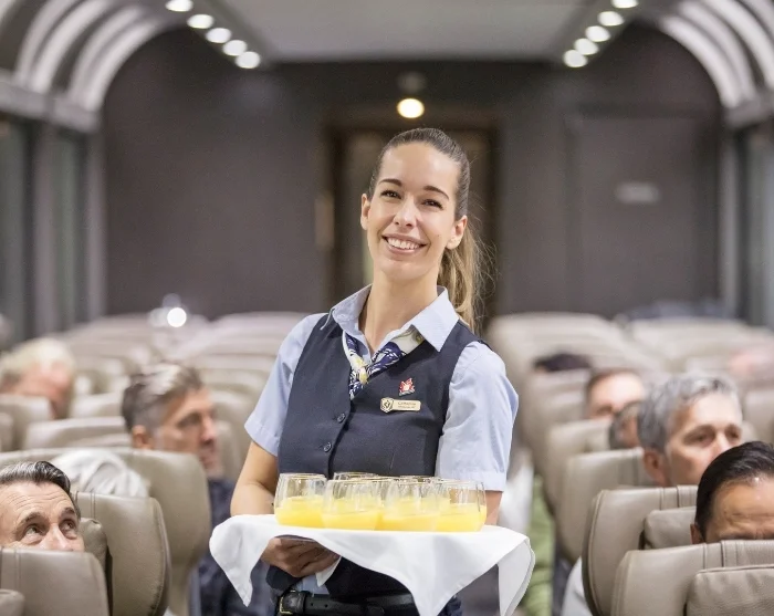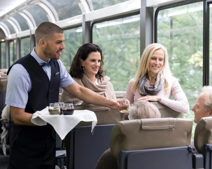 While savouring the train’s delicious breakfast and lunch, the dramatic scenery of the Rocky Mountains unfolds before you through the train’s large windows – the so-called glass domes – and you’ll find that your coffee has never tasted better.