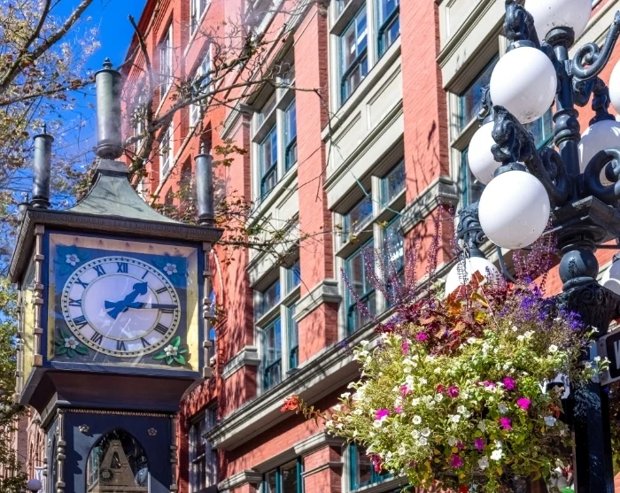 In the city’s oldest neighbourhood, Gastown, you’ll find one of the world’s only steam-powered clocks—the Gastown Steam Clock, built in 1977 and still “whistling” on the hour every hour. This area charms with its cobblestone streets and vintage gas lamps, making it the perfect spot to discover cosy eateries and soak up the local atmosphere.