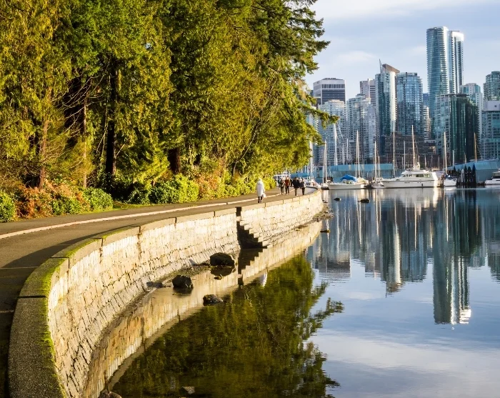 We highly recommend paying a visit to the urban oasis of Stanley Park. The park boasts the Vancouver Seawall, a path designed for walkers and cyclists alike. Here, you’ll enjoy the perfect blend of city and nature—with majestic trees, the shimmering sea, and Vancouver’s impressive skyline all in view. Within Stanley Park, don’t miss the famous totem poles, dating back to the 1880s. Their beautiful carvings and vibrant colours share stories of the First Nations peoples and their achievements.