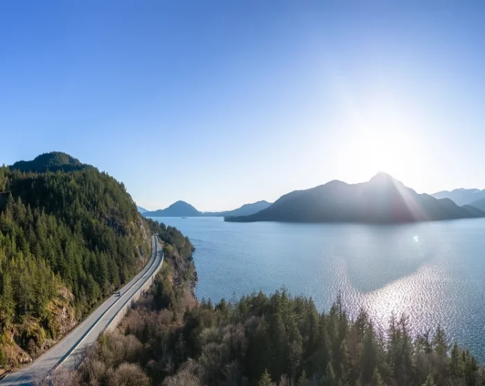The first stretch from Whistler treats you to another scenic drive along Highway 99 – better known as the “Sea to Sky Highway”. Today, you’re travelling from the heights of the “Sky” down towards the “Sea” itself, with breathtaking views accompanying you every step of the way.