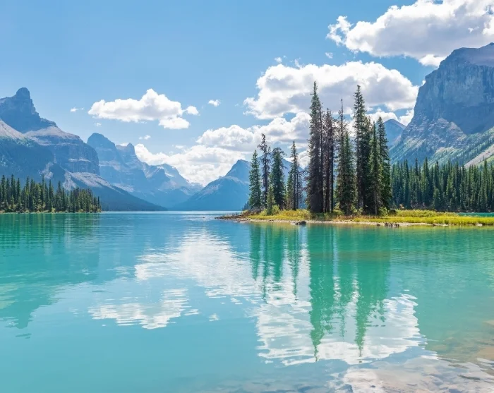 Among the park’s many highlights is the breathtaking Maligne Lake, renowned for its dazzling azure waters framed by soaring peaks and glaciers. Maligne Lake is a popular spot in the summer months, so we recommend visiting earlier in the day. The drive from Jasper’s main town to Maligne Lake is just under 48 km, and there are plenty of interesting stops along the way. En route, you can marvel at the Rocky Mountains’ deepest gorge, Maligne Canyon, as well as the unique Medicine Lake.
