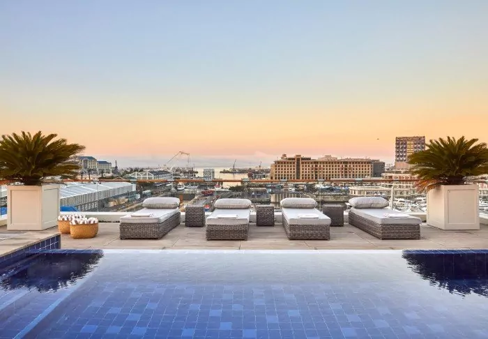 The spa and pool are located on their own island in the harbour and are all but surrounded by a tropical garden – in the heart of the city. In the lounge, you can enjoy a cocktail overlooking Table Mountain while waiting for your table at Africa’s only Nobu restaurant – it’s popular, so be sure to make a reservation well in advance.