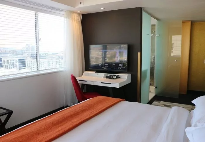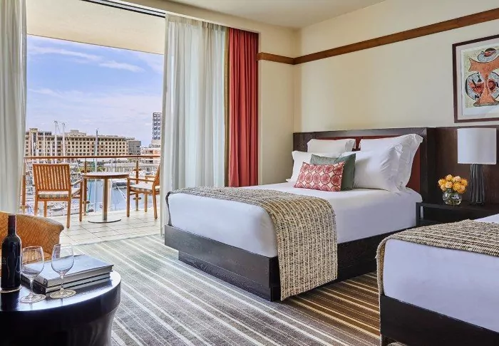The rooms at the hotel are some of the largest in the city and all of them have their own balcony, Nespresso machine, flat screen TV, bathtub and views of the vibrant harbour.