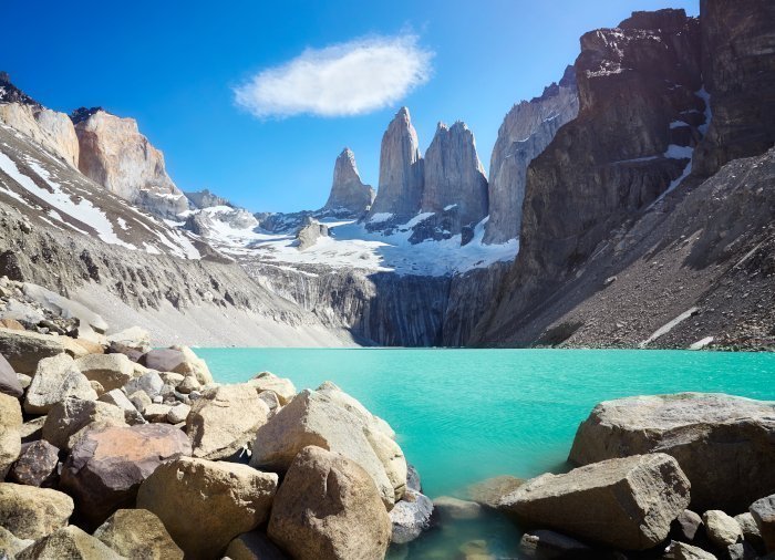 Along the route, you cross ice-cold mountain streams and walk along moraines deposited by glaciers over time. The last section takes you upwards and is very uneven, and on some parts of the route there are very steep drops, which can be hard on the knees. But the rewards are great when you reach the “Base de Las Torres” at the foot of the vertical granite towers, Torres del Paine, after which the national park is named. Here, you eat you packed lunch and have the opportunity to take photos of the amazing landscape before heading back the same way again. After a long day’s hiking, you will be driven back to your hotel.