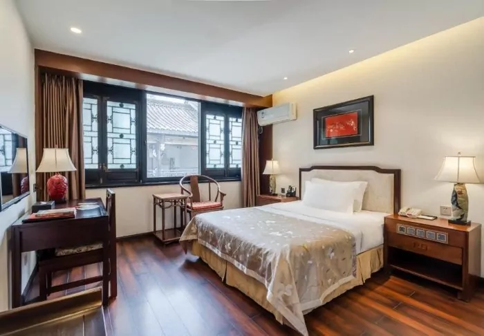 The rooms are elegantly decorated in Chinese style with wooden furniture and fine details. They are all equipped with modern facilities such as air conditioning, Wi-Fi, safety box, tea and coffee making facilities and a flat-screen TV. The bathrooms are modern and newly renovated. Here you will find bathrobe, slippers, hairdryer and sundry toiletries.