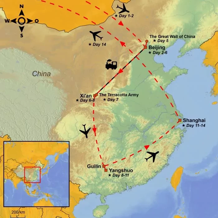 You will fly from your chosen airport to Beijing, with connecting flights along the way.