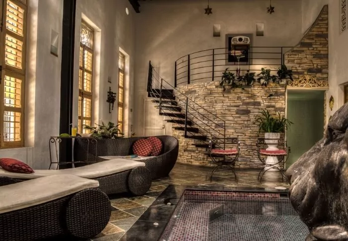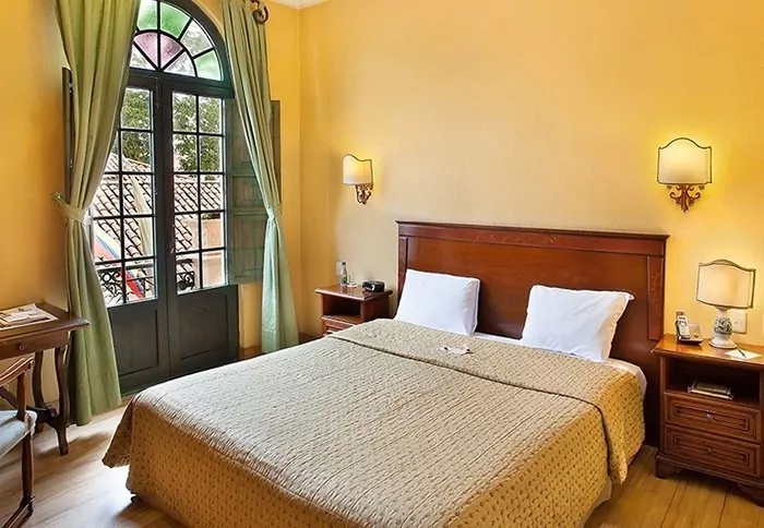 The hotel has just 23 rooms, all of them spacious and beautifully furnished with beautiful dark wood furniture. There is air conditioning, a TV, safe and minibar in the rooms.
