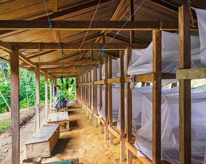 You’ll spend the nights in 3 different jungle camps on the journey to and from the Lost City. The camps are quite basic, with shared toilet and washing facilities. They accommodate around 50 people and are shared with multiple groups, so remember to bring earplugs. Accommodation is in bunk beds or hammocks with mosquito nets. Sheets and blankets are provided in the camps, but we recommend bringing your own sleeping bag liner. Night-time temperatures can drop to 18-22 degrees Celsius. The beds are sheltered under a canopy, so they are protected from the rain.