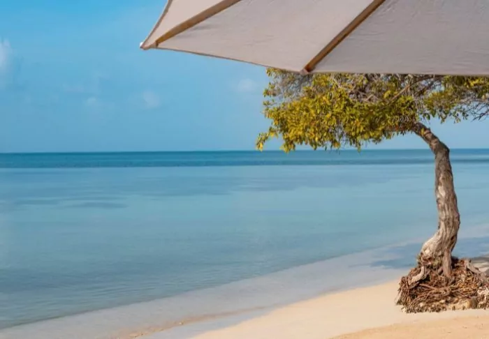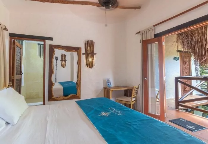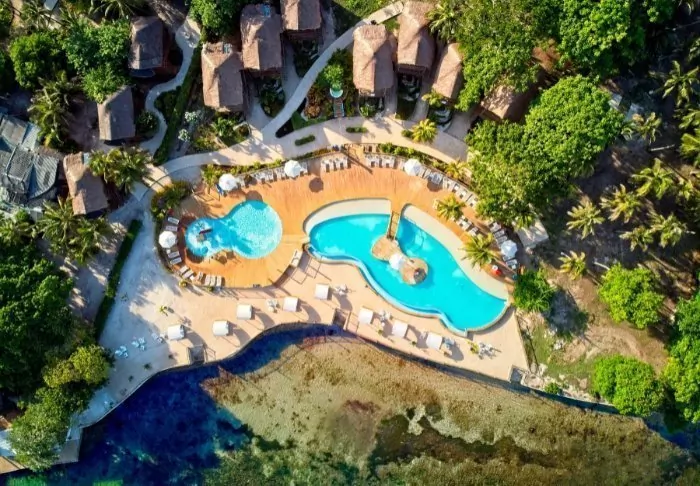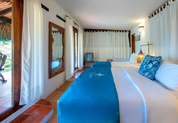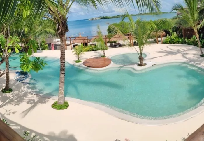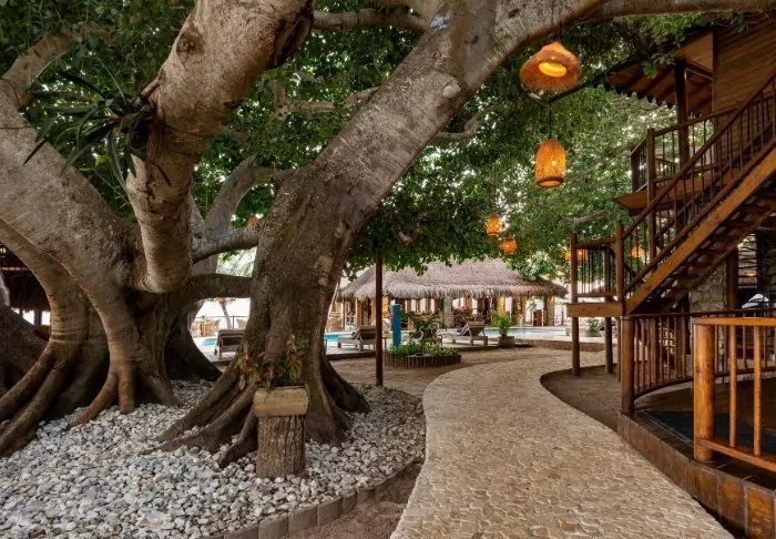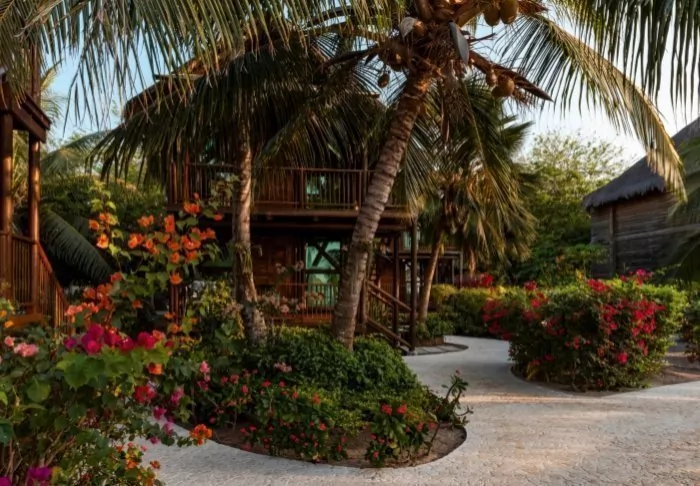 Nestled in a tropical garden surrounded by palm trees and mangrove forest, the hotel boasts its own private beach, offering the joy of waking up to turquoise waters and the gentle sound of waves lapping at the shore.