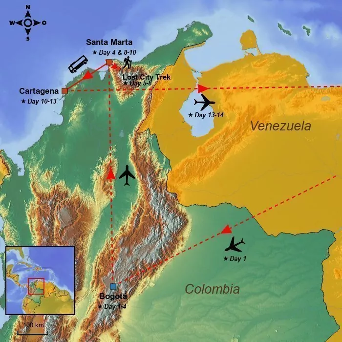 You will land at your chosen airport after an eventful tour of Colombia.