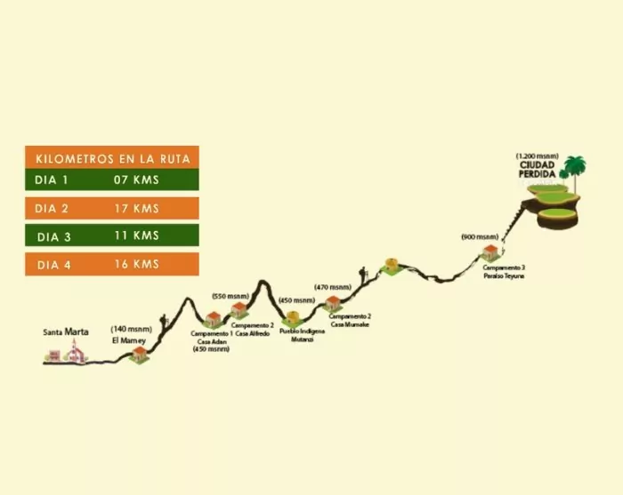 Following breakfast, you’ll be picked up from your hotel and taken in a 4×4 vehicle on a roughly 3-hour journey along bumpy roads to the small town of El Mamey, the starting point for the trek. Here, you’ll break for lunch before embarking on the initial stage of your walk towards the Lost City. The path blends paved roads with narrow trails and begins with a notable incline, so expect to break a sweat right from the outset.
