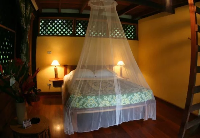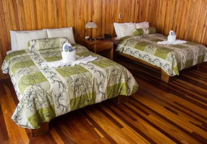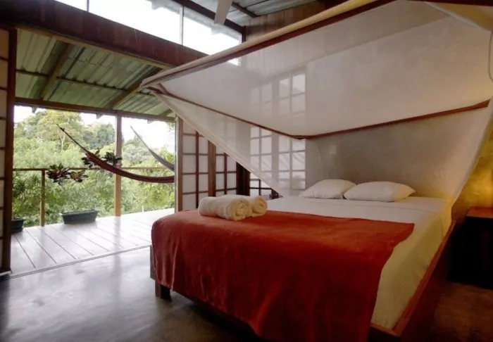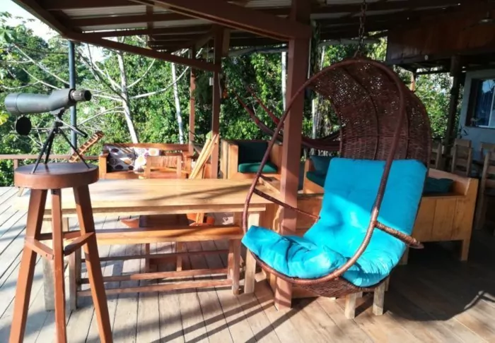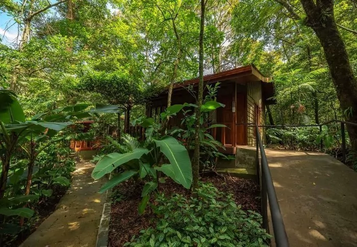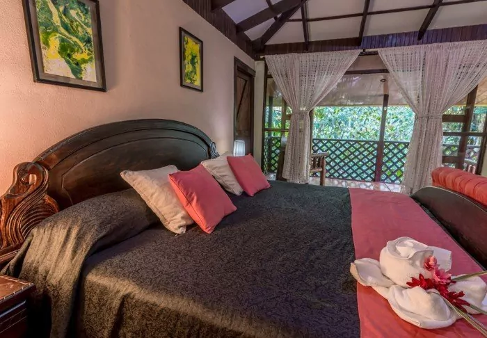 The lodge has 28 rooms, all equipped with air conditioning and hairdryers. Each also has a veranda with a hammock and a rocking chair, from which you can enjoy the tropical gardens and the sounds of the forest.