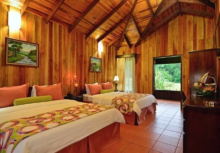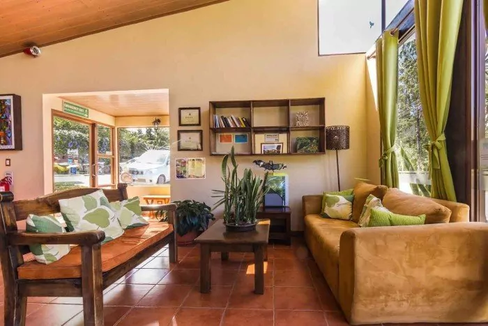 All 60 rooms at the lodge are inspired by the original style of the first mountain huts in Monteverde, and are furnished with wooden furniture and decorated in warm colours. They are equipped with cable TV, a telephone, a safe, a coffee maker and en suite toilet and shower. Outside the rooms is a shared veranda, where you can sit and relax in one of the chairs.