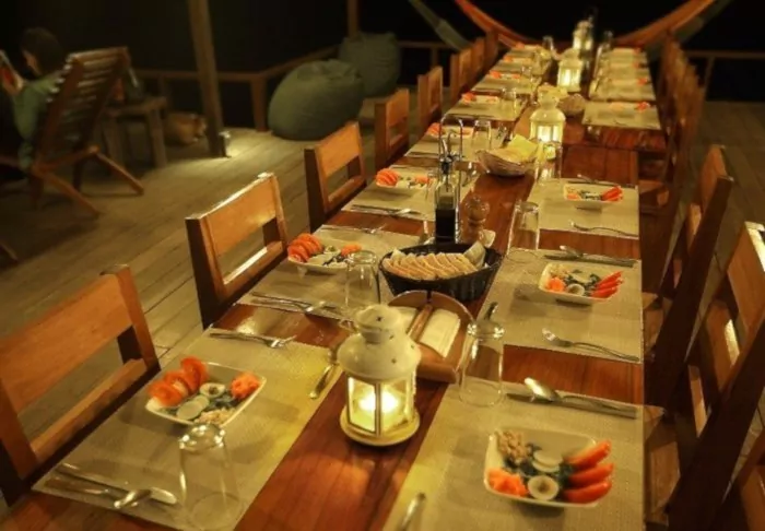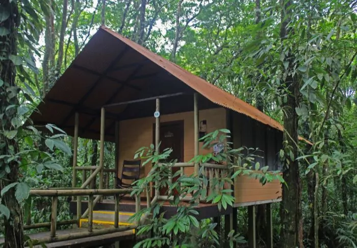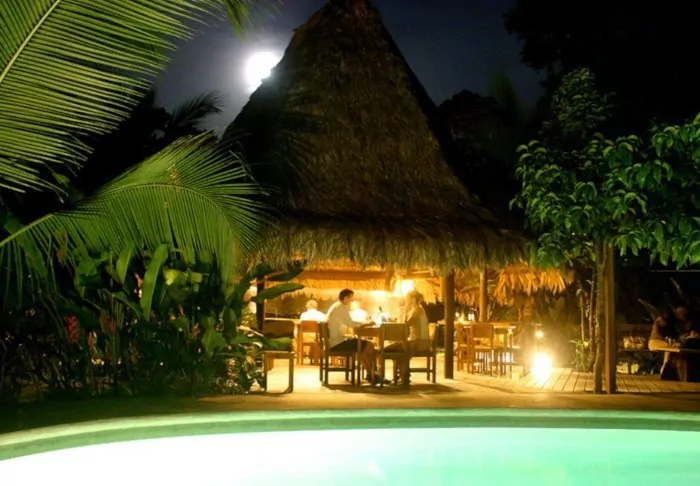 Its eight pleasant bungalows are located on small hills in the middle of the hotel’s hilly landscape and can each accommodate up to 4 people. All have ceiling fans, a safe, mosquito nets over the beds and an en suite bathroom with hair dryers and toiletries. Each bungalow also has a veranda with a couple of hammocks where you can relax after an action-packed day and enjoy the scenic surroundings. You may even be lucky to enough see parrots, toucans, hummingbirds or other exotic birds flying by.